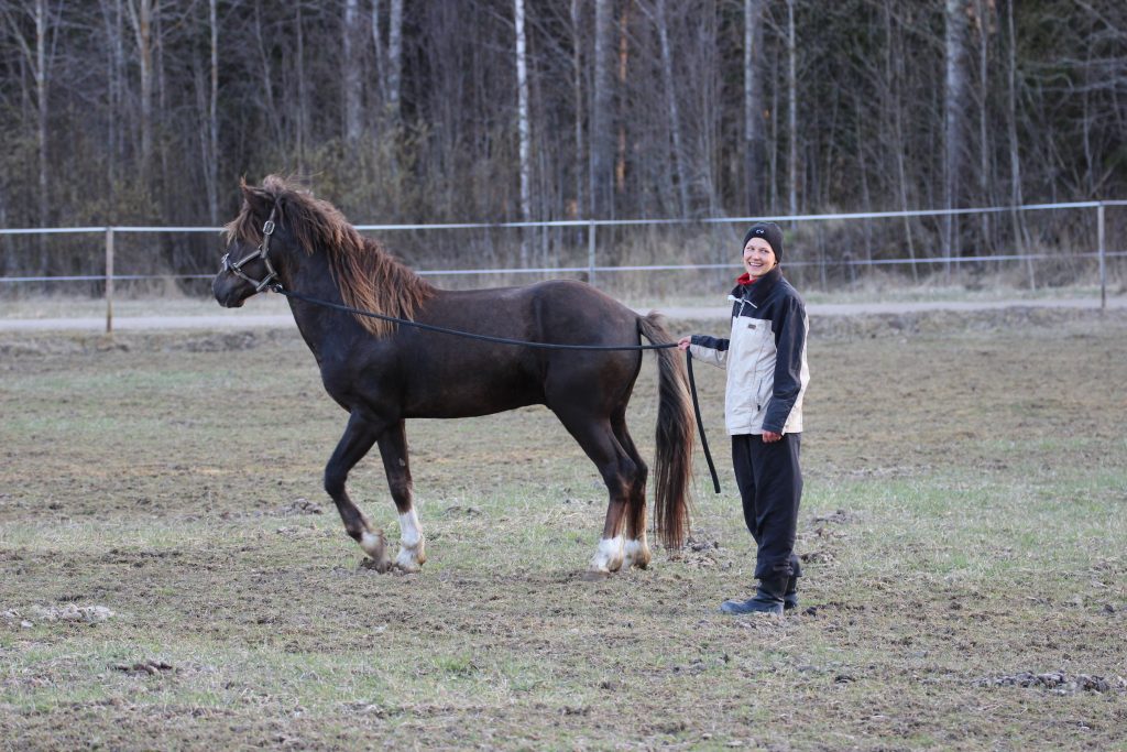 Pikkuinen ori olikin sitten ori ihan todella, ei se varsinaisesti kovaa purrut, mutta näykki aina, kun oli tilaisuus. Sillä kului ratsukenkä kuudessa viikossa puhki, koska jalat olivat levottomat koko ajan. Pikkiriikkinen kaviomurheinen ori sai hyvät röntgenkuvat ja aloimme hommiin. Niin pitkään, kun olin maassa ori oli levoton ja heilui, kun heinämies, mutta selkään päästyäni kaikki joutava heiluminen loppui ja alettiin töihin. Orilla oli kuitenkin niin paljon virtaa työn ulkopuolella, että päätimme ruunata sen kaikkien mielenterveyden vuoksi.